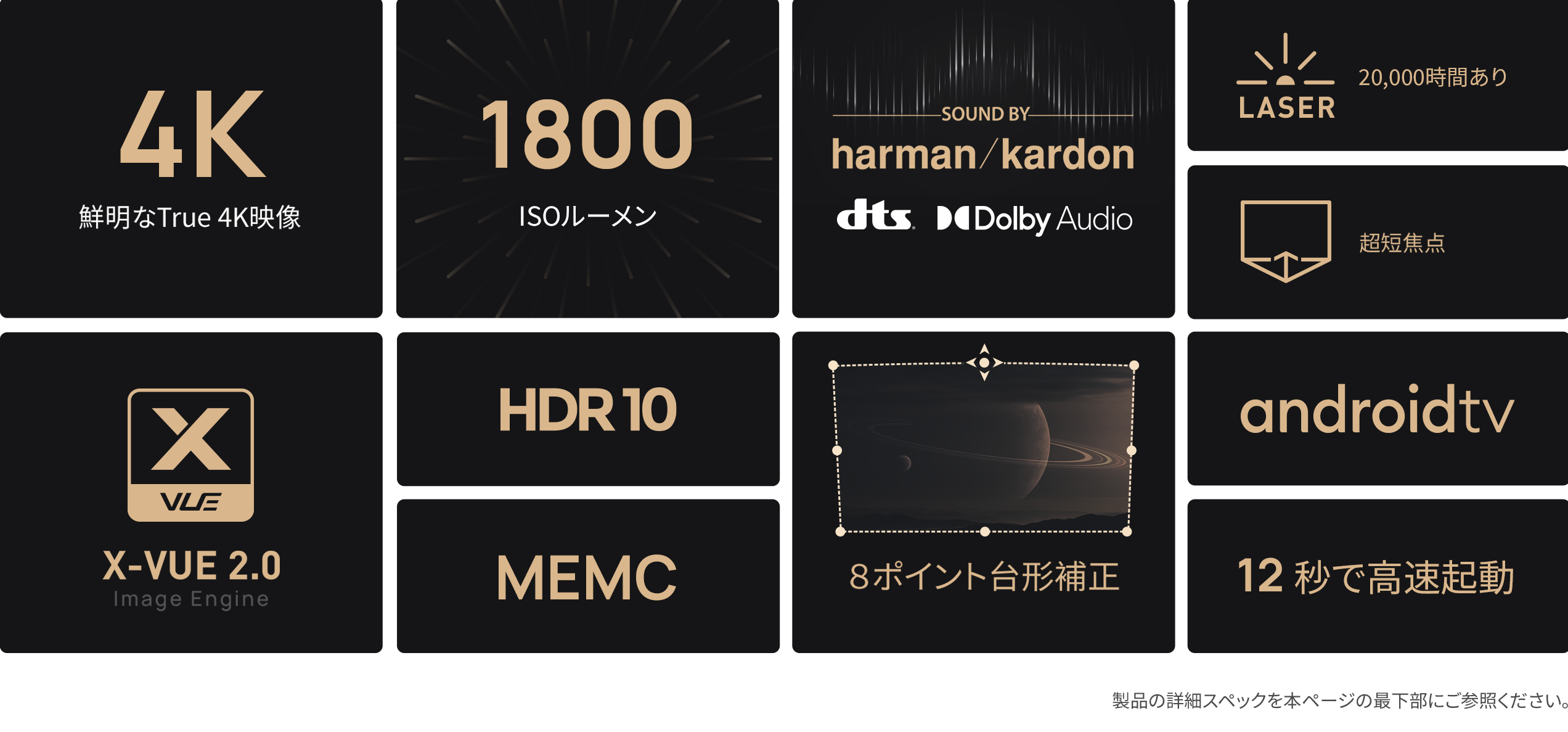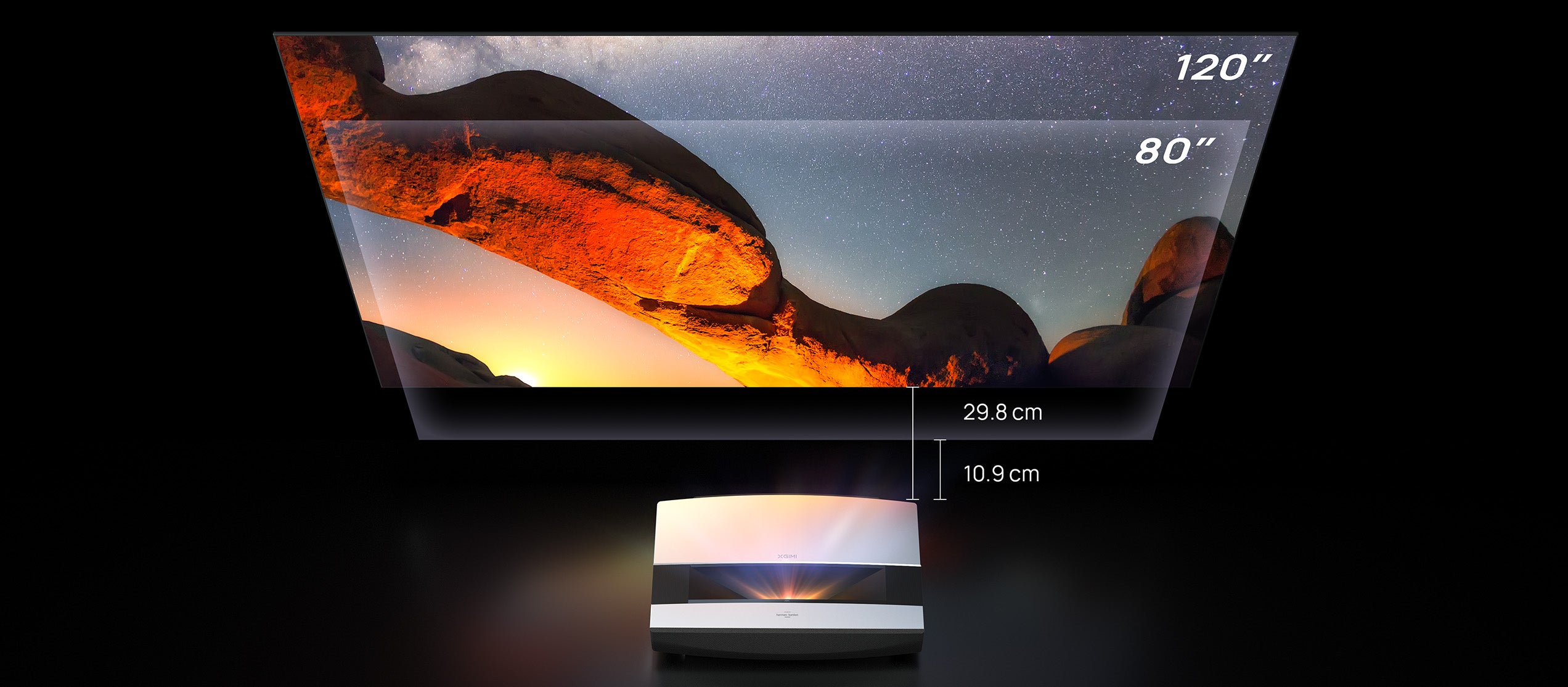 自宅にもピッタリ合う流線型のデザインと、省スペースでも使用可能な性能。どんな壁面も、豪華な120インチの映画館スクリーンに生まれ変わらせることができます。お好きな投影角度で、鮮やかな4K画質の3Dコンテンツに没頭してください。2