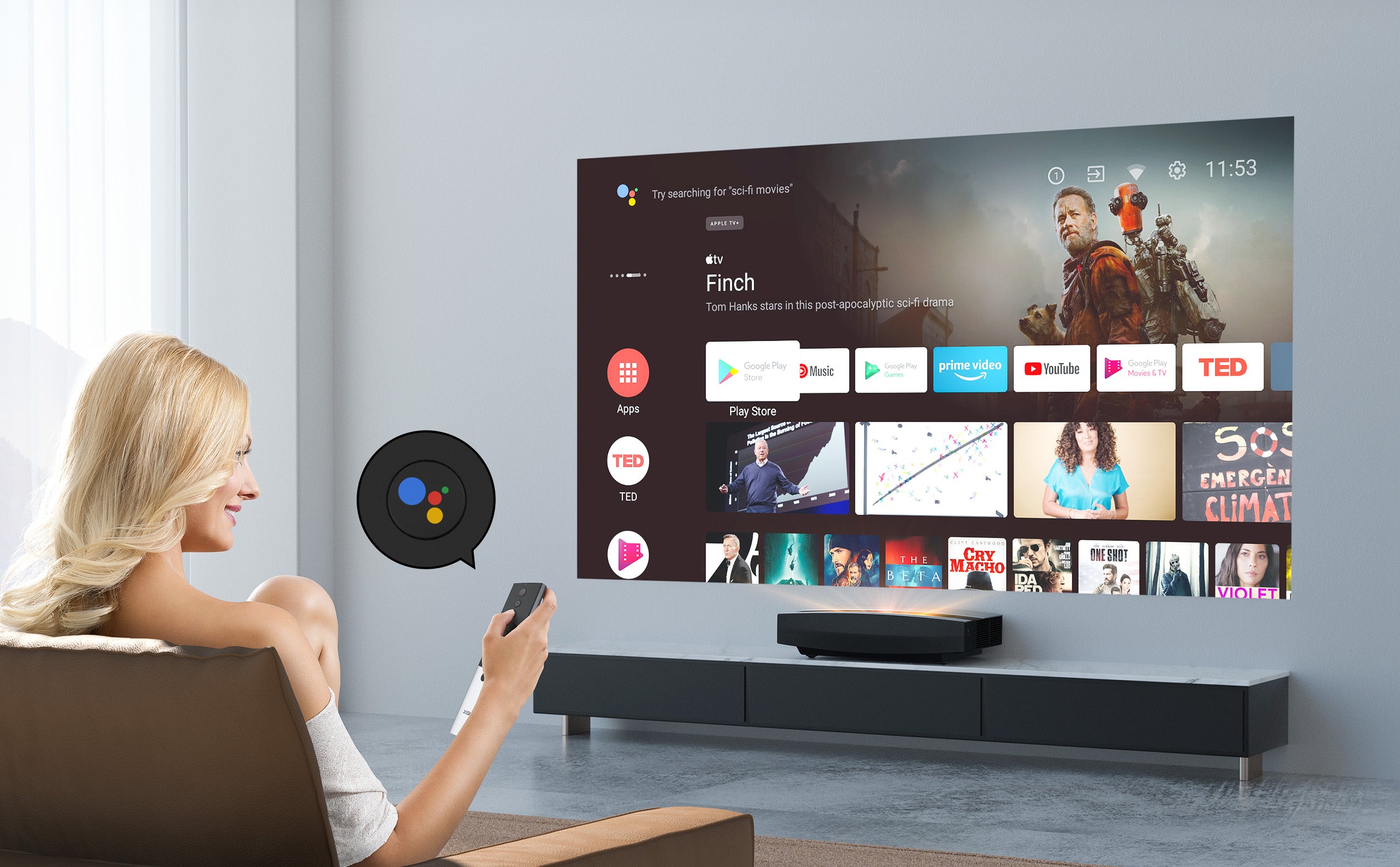 Android TV™とGoogleアシスタント、そしてChromecastを統合することによって、大好きなコンテンツへ簡単にアクセスできるようになりました。4 Disney+やHulu、YouTubeなど5000種類以上のアプリと接続したり、音声でプロジェクターを操作をしたり、次世代の映像体験をお楽しみ頂けます。