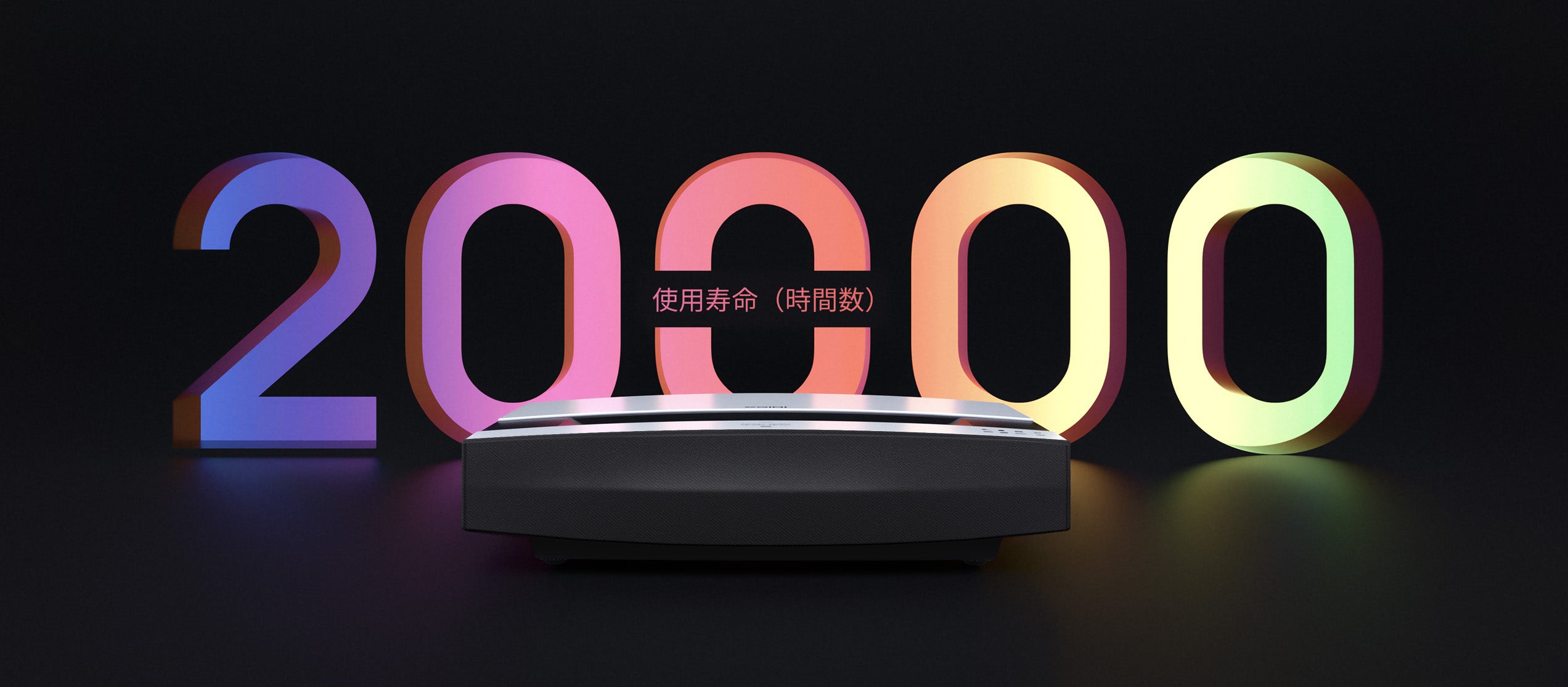 AURAのレーザー光源は寿命が20,000時間あり、出費と廃棄物を大幅に削減します。最高ランクのレーザー技術を使用している強力なデバイスでありながら、毎日4時間の視聴を13年間4以上続けられます。