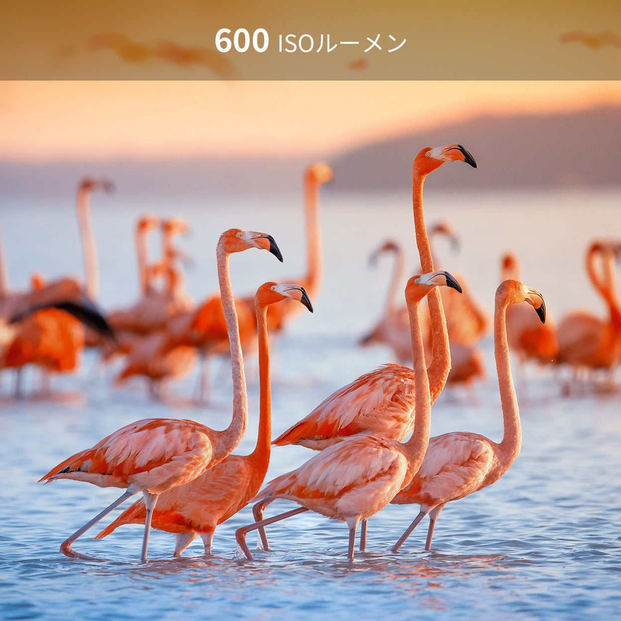 このボディサイズでは最高クラスの輝度600 ISOルーメン2の明るさです。