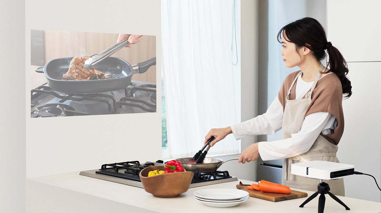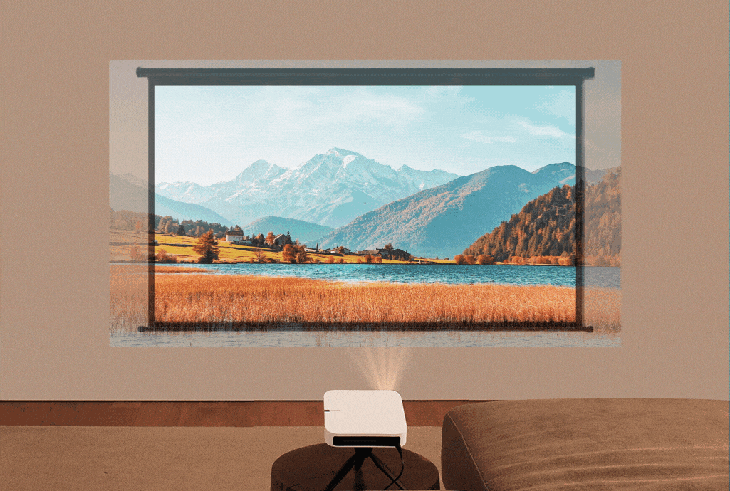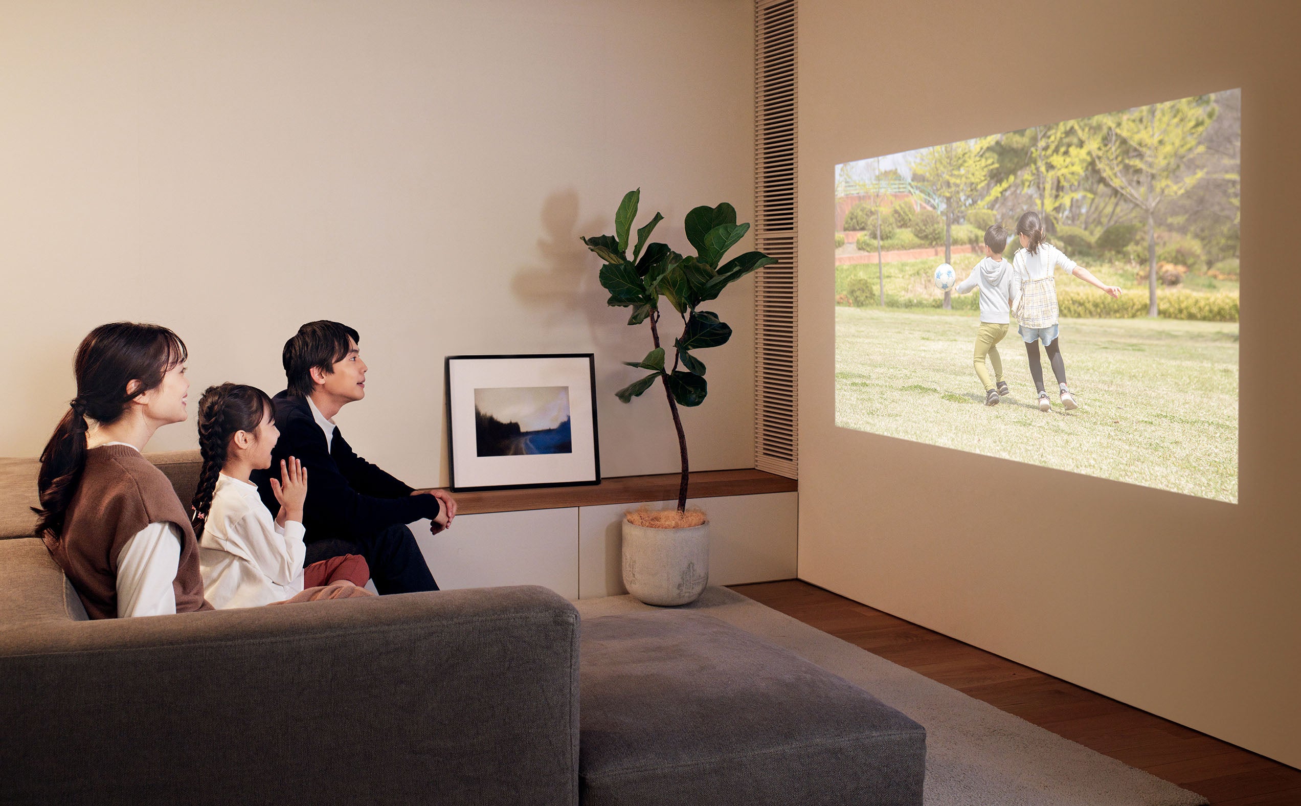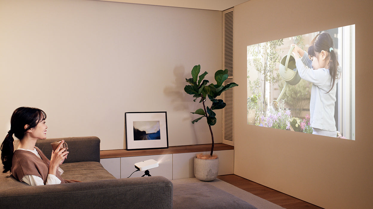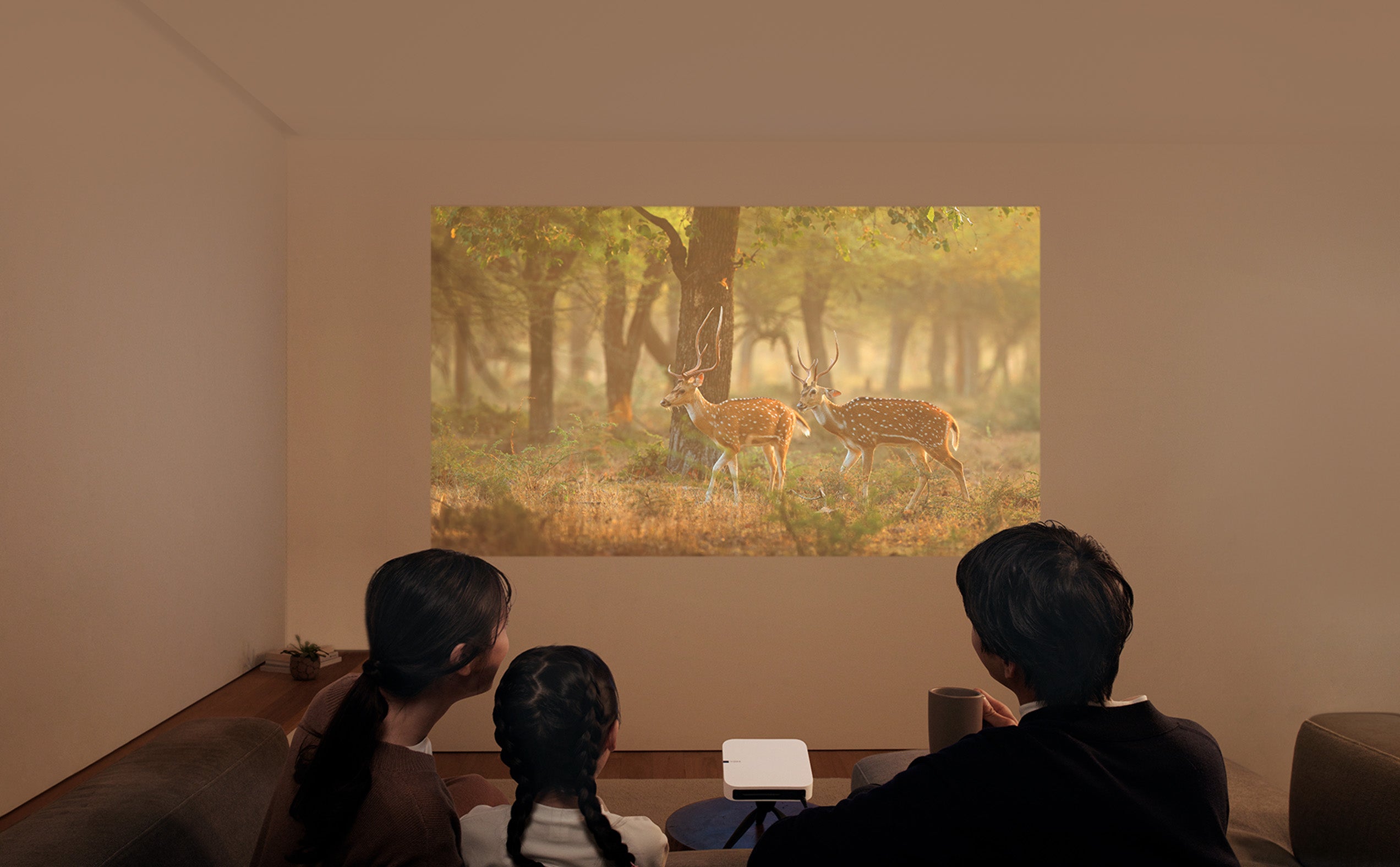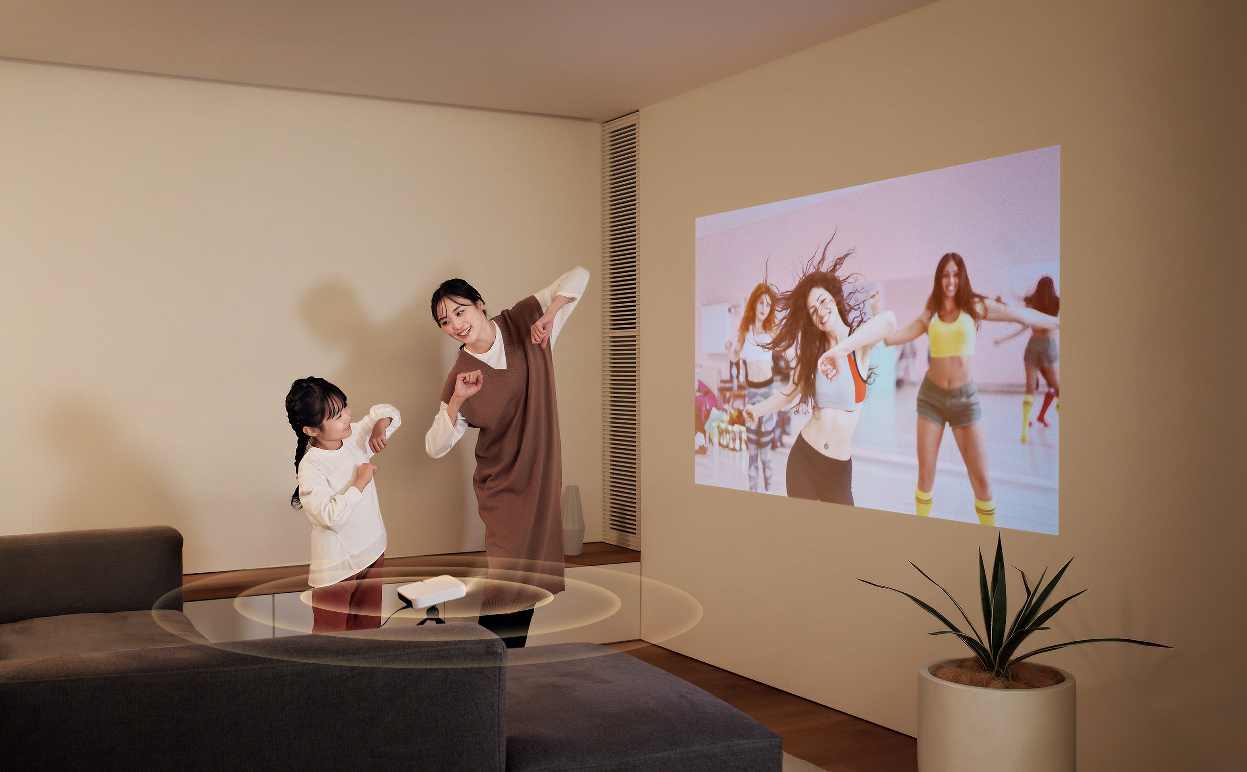 最大200インチ1のフルHD映像を大画面で楽しむことができるElfin。便利な自動画面調整機能により、家族みんながカンタンに高画質·高音質の映像体験をお楽しみいただけます。