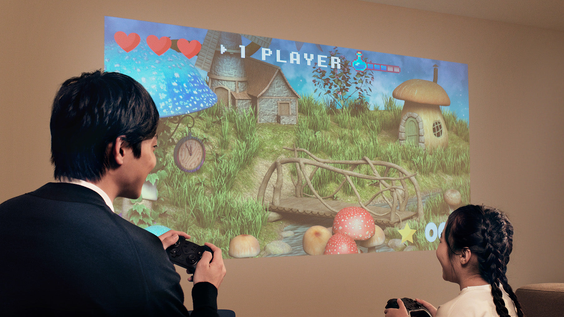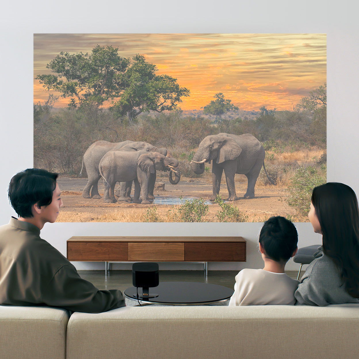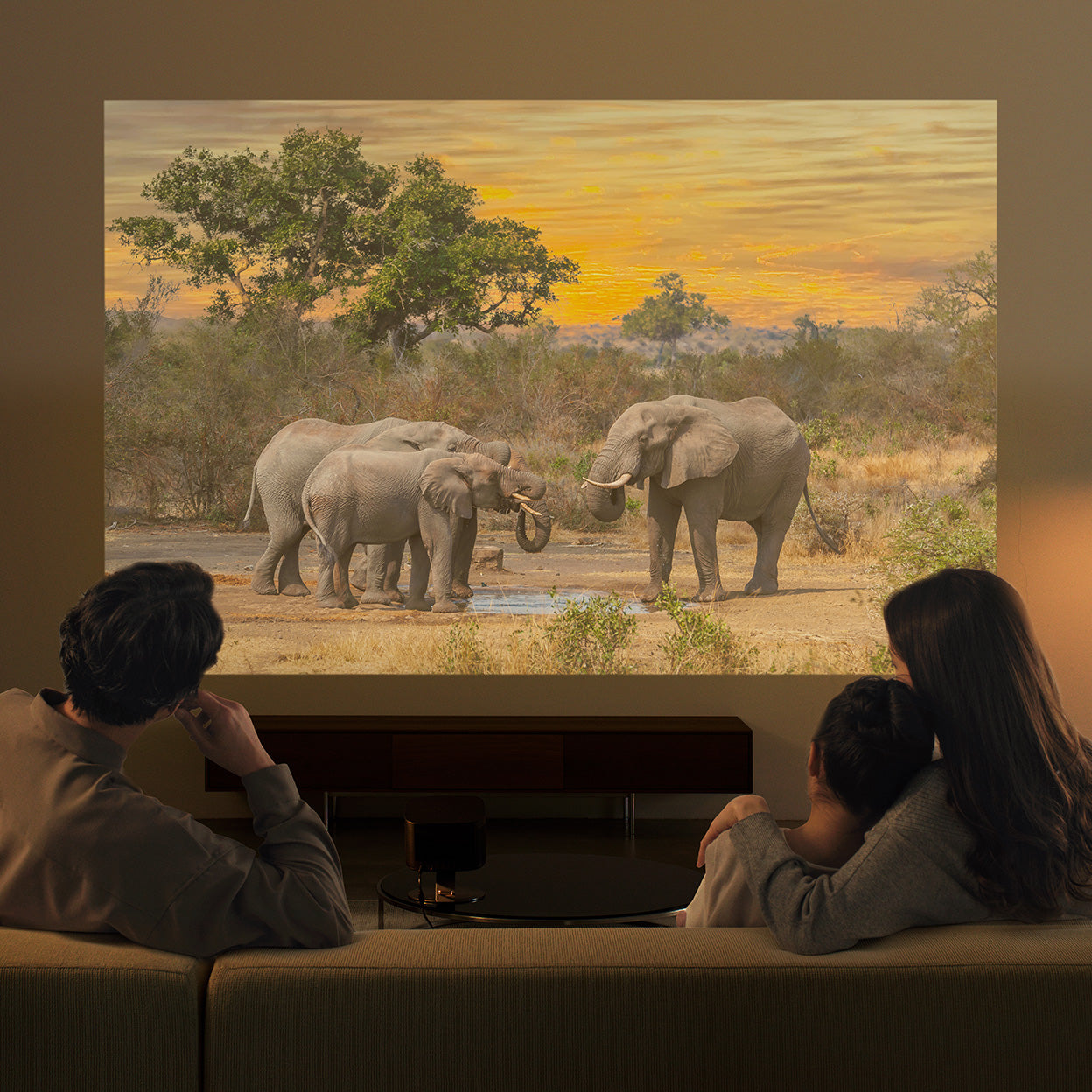 プロジェクターとしては最高レベルの4K映像を、最大解像度3840×2160、最大200インチの巨大なスクリーンサイズで映し出します。超巨大スクリーンで映像を堪能する、贅沢な時間をあなたに。