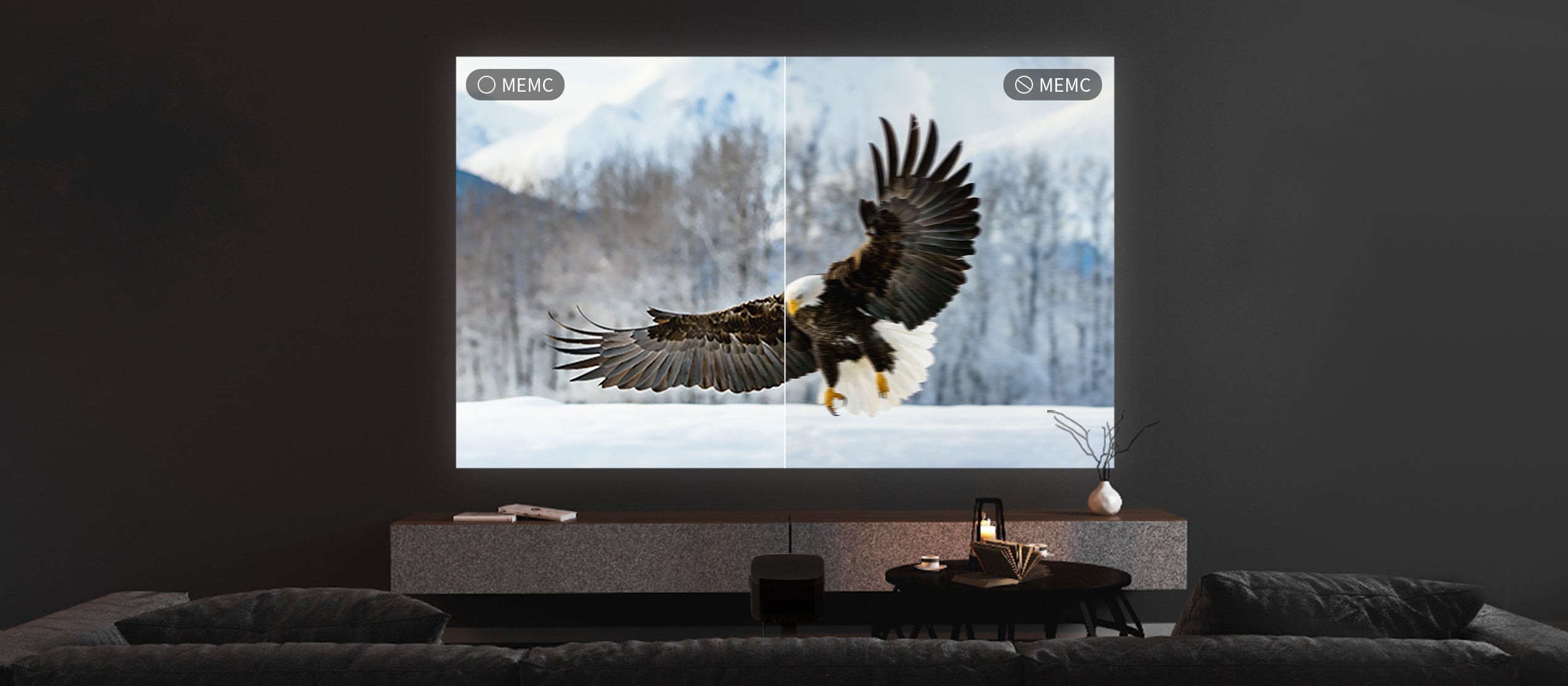 世界に認められるプロジェクターブランドXGIMIの持つ、様々な映像技術を結集したのが、このHORIZON Proです。たとえば、フレーム補間技術「MEMC」。スポーツやゲームなど激しい動きを投影する際も、独自の特殊なアルゴリズムによって映像のブレを防止し、シャープな映像が維持できます。また、画像エンジンシステム「X-VUE2.0」は、画質をクリアに、色彩はよりリアルに投影。そして「HDR10技術」により、高いコントラスト比で映像の細かい部分まで鮮明に映し出します。