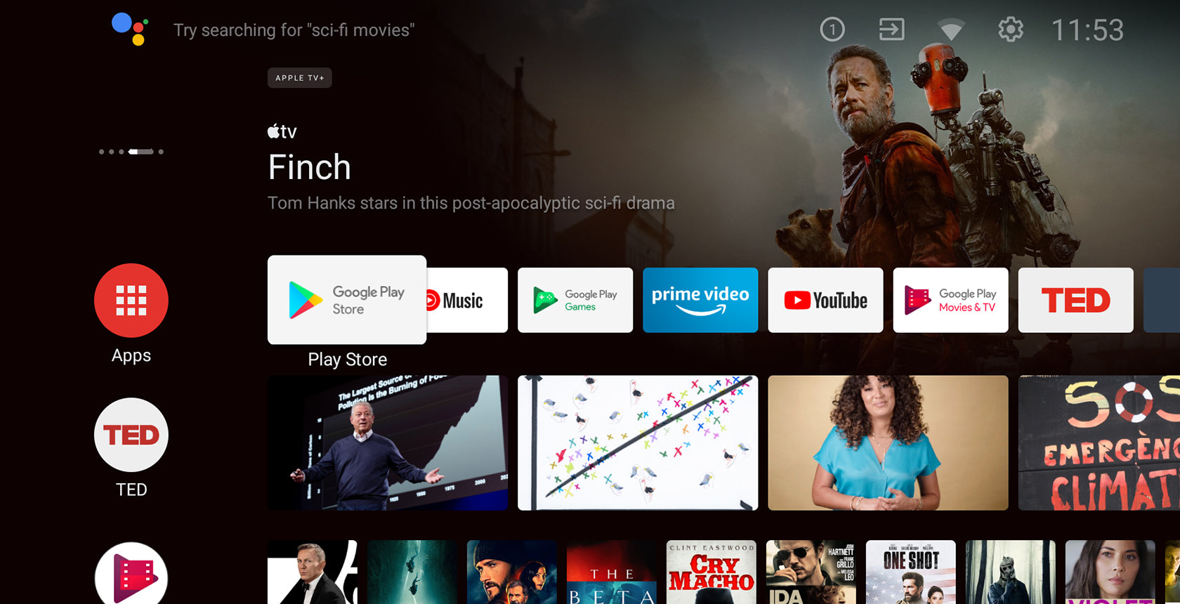 YouTube、Prime VideoやDisney+といった動画サービスなど、Android TV 10.0 + Google Playが提供する5000種類以上のアプリを手軽に楽しめます。
