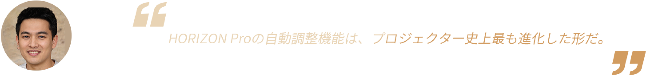 4K映像を最大200インチ1の大画面で楽しむことができるHORIZON Pro。高品質な映像と本格的な音響システムで、まるで映画館にいるような臨場感。次世代プロジェクターならではの感動をあなたに。