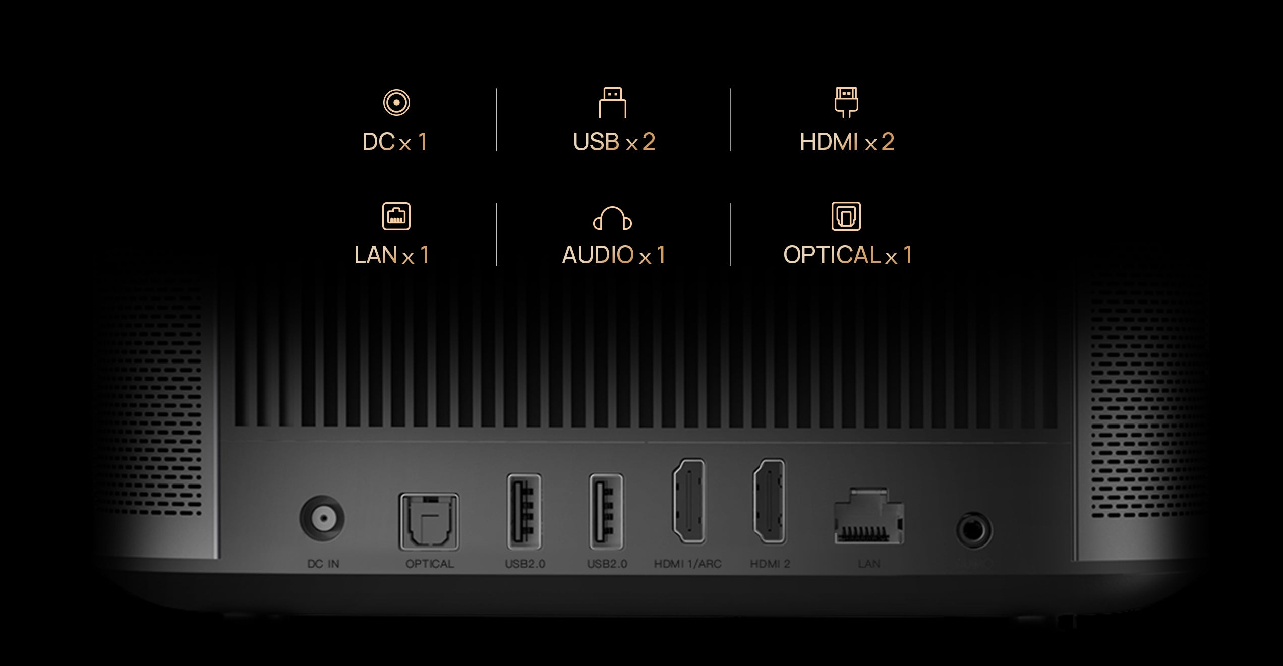 HORIZON Proは、HDMIとUSBポートを各2個ずつ、 LAN、ヘッドフォン端子を備え、様々な機械と接続できます。2.4/5GHzのデュアルバンドWi-Fiと、 Bluetoothで、コードレスでの接続ももちろん可能です。