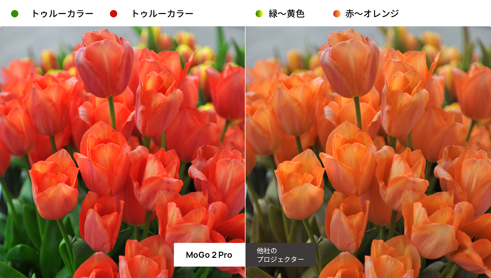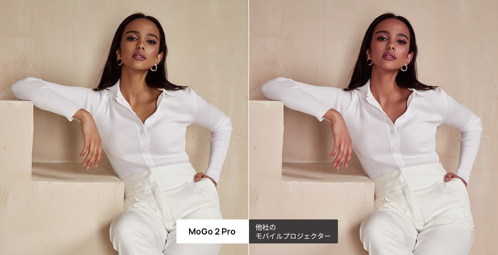 MoGo 2 ProのDCI-P3 90%の広色域は、他のプロジェクターよりもはるかに強力です。 あらゆるコンテンツを鮮やかで生き生きとしたカラーで映し出します。